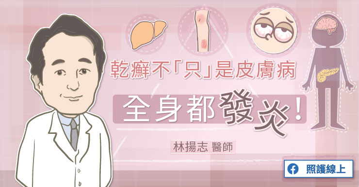 許多人聽到乾癬,直覺聯想到皮膚疾病,事實上,乾癬屬於自體免疫疾病的一種,病徵除了皮膚外,隨著體內持續發炎,其他器官也可能受影響。 台灣皮膚科醫學會監事暨馬偕紀念醫院皮膚科林揚志醫師指出,乾癬常見的共病…
