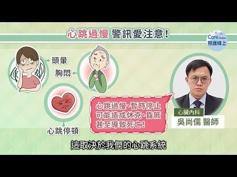 劉育志醫師:大家好,我是劉育志醫師,歡迎吳尚儒醫師來到照護線上。 吳尚儒醫師:大家好,我是台中榮總的心臟內科吳尚儒醫師。 劉育志醫師:請問心跳過慢,對人體會有什麼影響? &n…