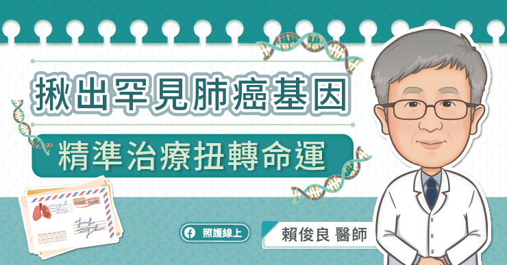 一名確診晚期肺癌的50多歲男性,在進行一般的基因檢測時並沒有找到突變基因,病程也加速惡化,全身嚴重浮腫。所幸,接受次世代基因定序檢測後,很幸運地發現他是較罕見的MET基因。賴俊良醫師說,後續在使用相對應的標靶藥物治療後,全身浮腫的狀況逐漸改善,病情也受到控制,且恢復到原本的工作與生活。
