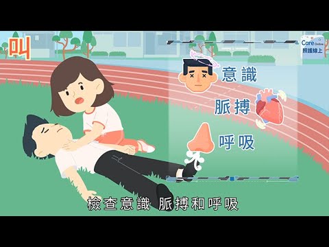 「啊!有人昏倒了!」突然遇到有人昏倒在地時,你可以這樣做。請先觀察周遭環境,確保自身以及病患的安全,然後進行「叫叫壓電」!第一步:叫「你還好嗎?」觀察患者是否有反應及呼吸。第二步:叫「趕快打119,請…